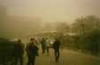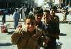 In front of the entrance of the Al-Mansour hotel this bus was parked, belonging to a group of Rumanian activists. The hysterical texts on the windows stimulate the imagination. |