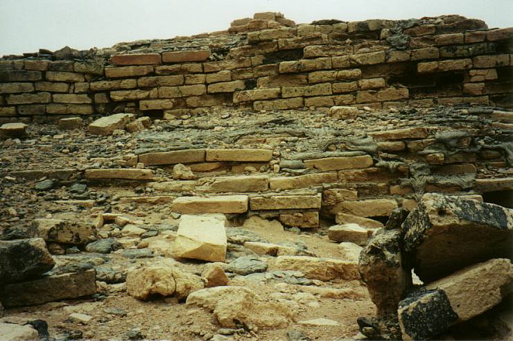 Clearly visible the use of alphalt instead of cement for masonry. |