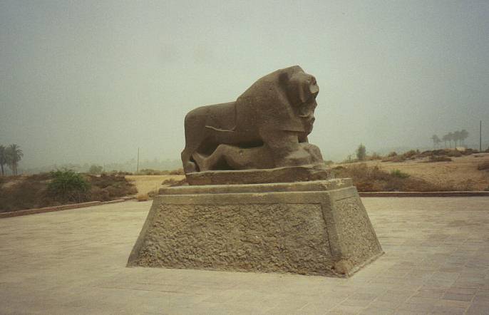 De Leeuw van Babylon, basalten beeld in de stad van Nebbuchadnezzar. Het staat er nog altijd. |